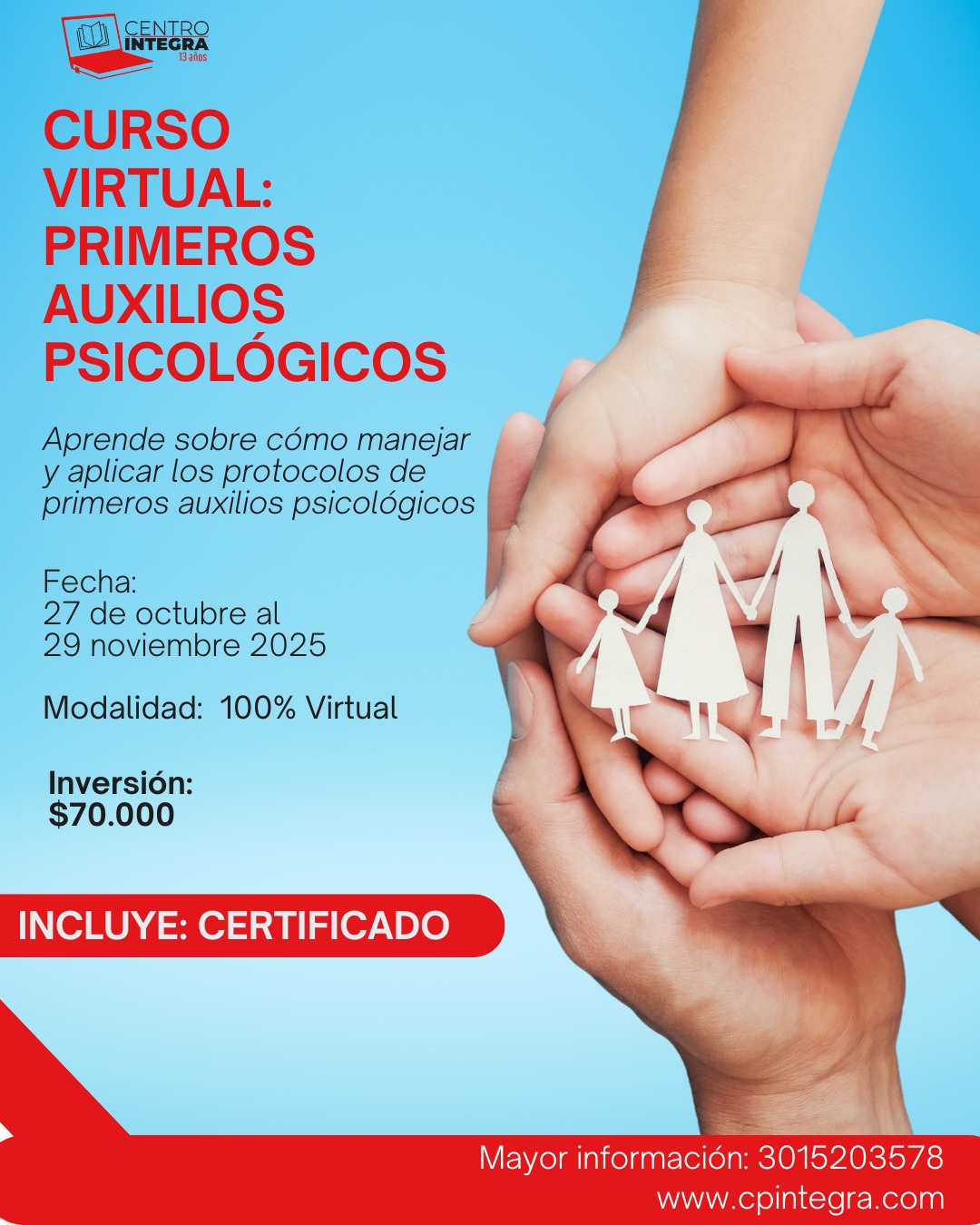 ✅ Ideal para estudiantes y egresados del área de Psicología que buscan fortalecer sus conocimientos en intervención en crisis.